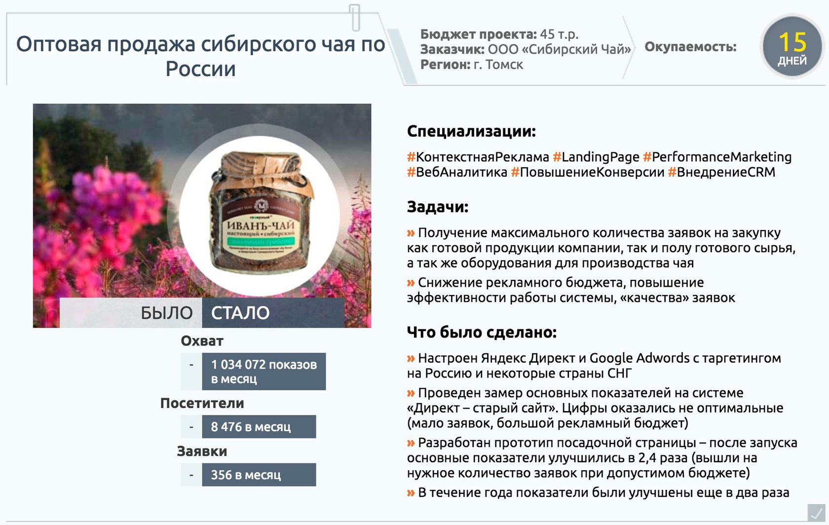 Производитель натуральных пищевых продуктов. Бренды "Сибирский чай" и др.